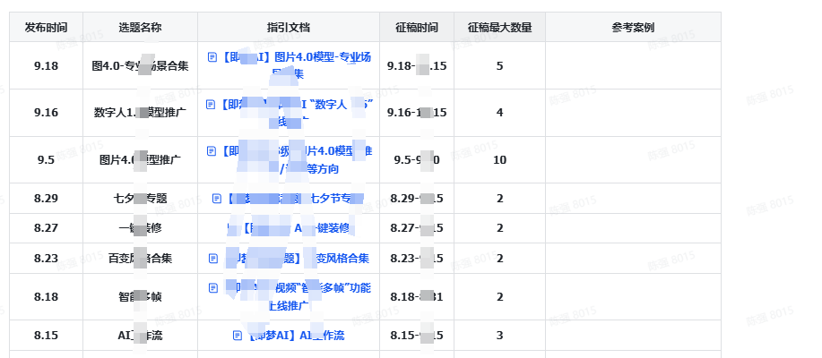 报备通过之后,需要根据账号调性,以及群内的小红书灵感选题进行发文,每个灵感选题有指引文档,征稿时间,征稿最大量,根据指引文档进行发文即可。