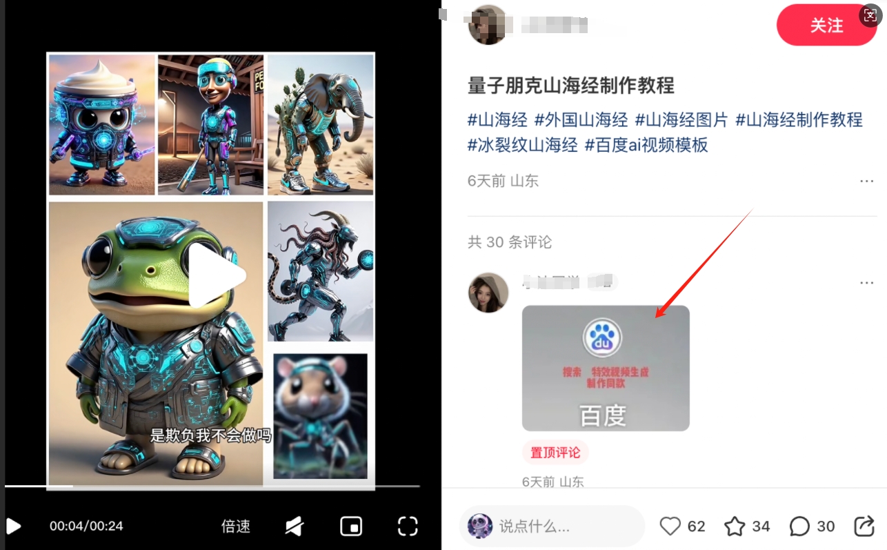 在视频本身或者留言区放你的专属别名,引导用户去百度APP搜索,并使用模版;