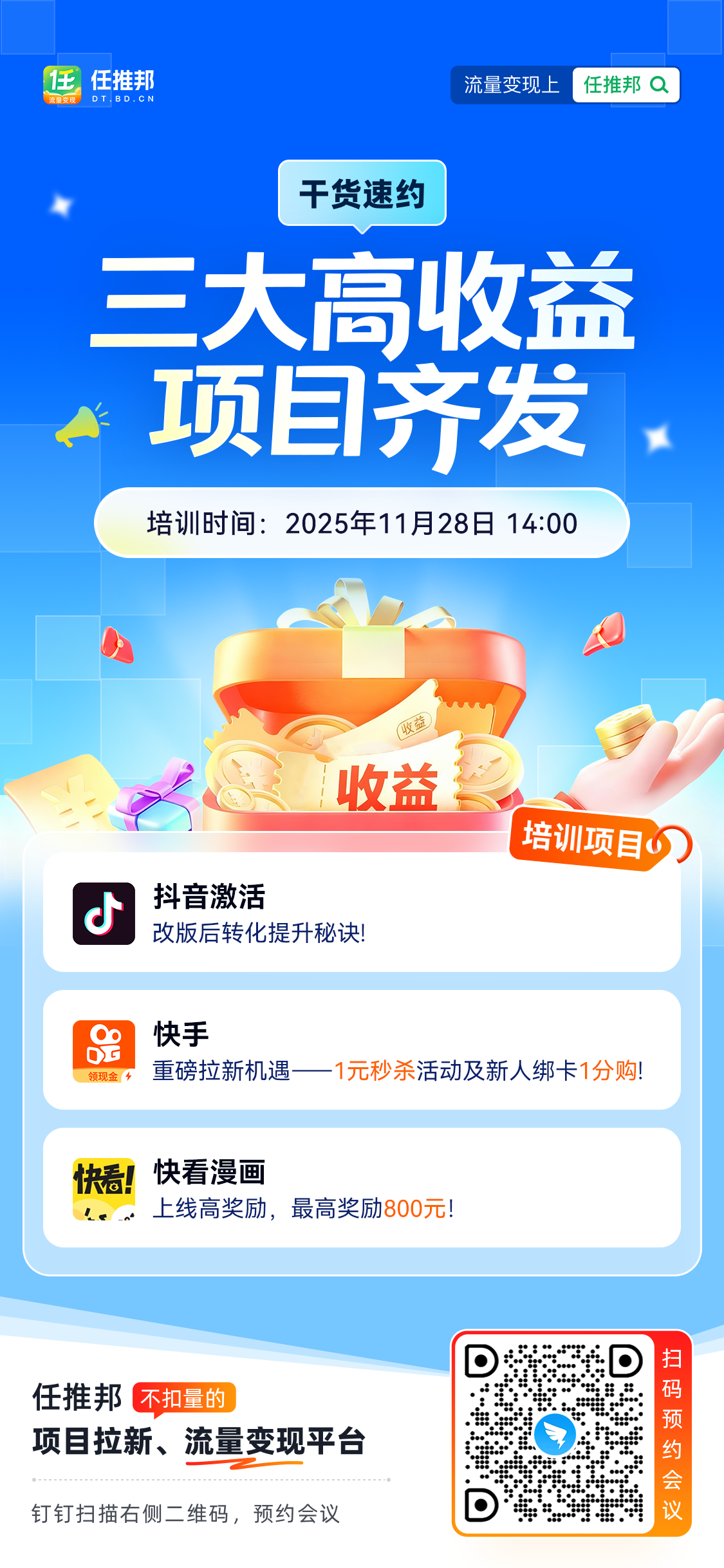 任推邦-三大高收益项目齐发,干货速约!(扫描下方二维码报名)